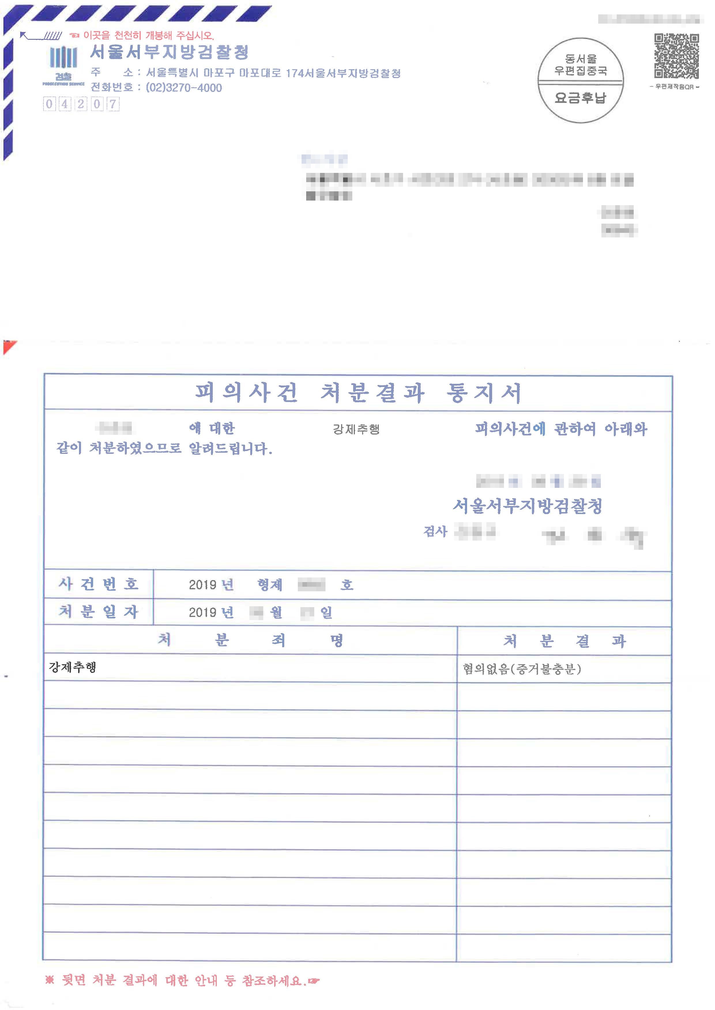 위와 같은 변론 결과, 의뢰인의 고소인에 대한 신체접촉은 술에 취한 고소인을 부축하는 과정에서 일시 발생한 것이고, 오히려 고소인이 적극적으로 의뢰인에게 성적접촉을 해온 점을 인정받아 최종적으로 검찰에서 [무혐의 ]처분을 받을 수 있었습니다.