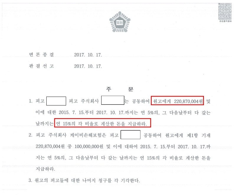 골프장 측의 관리, 감독 소홀이 인정되었고, 의뢰인의 과실은 전혀 인정되지 않아 피고들은 100% 손해를 배상하게 되었습니다.