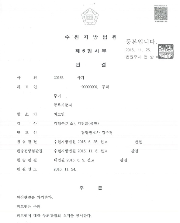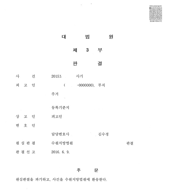 이러한 주장이 받아들여져, 대법원은 의뢰인에게 사기죄의 고의가 있다고 보기 어렵다며 원심을 파기 환송하였고, 파기환송심에서 의뢰인은 무죄 선고를 받았습니다.