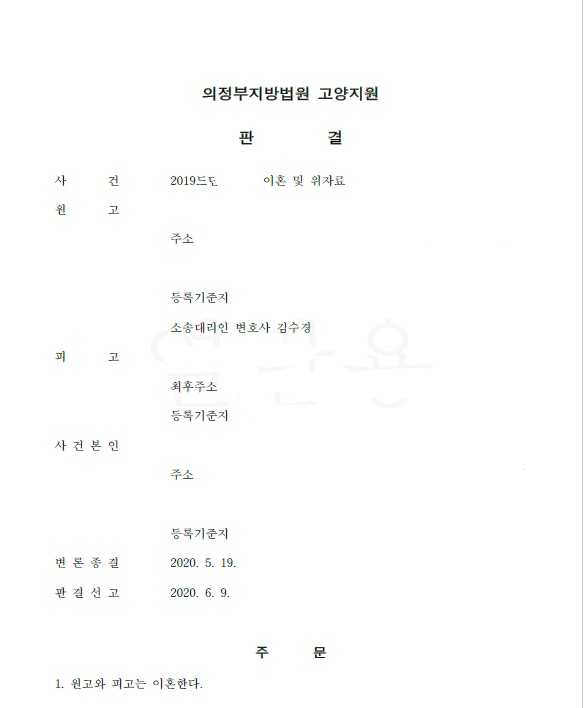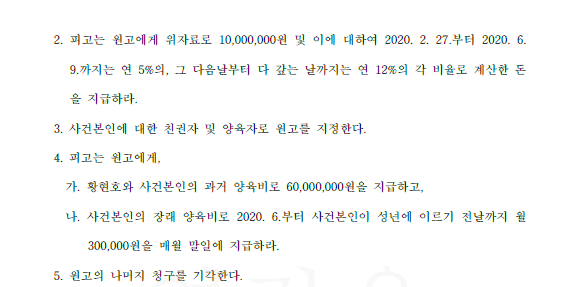 이러한 주장이 받아들여져, 법원은 위자료 1천만원과 과거양육비로 6천만원, 장래양육비까지 인용하였습니다.