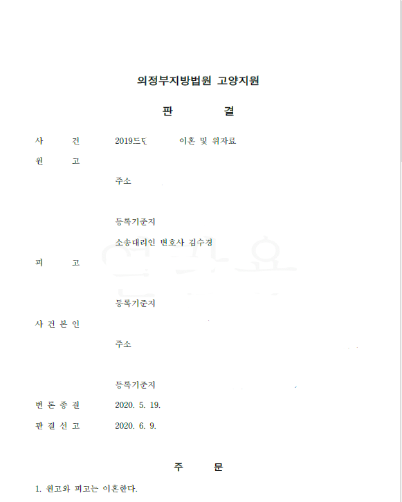 의뢰인이 자녀 2명을 현재도 혼자 양육하고 있다는 점을 들어 이혼청구와 위자료 청구, 친권양육권청구 그리고 과거, 장래의 양육비청구를 하였습니다.