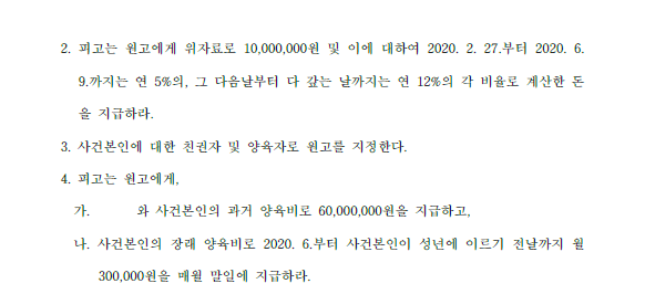 법원은 이러한 주장을 받아들여 이혼청구를 인용하고, 위자료를 인정하였으며, 과거 양육비로 6천만원, 장래 양육비까지 선고하였습니다.