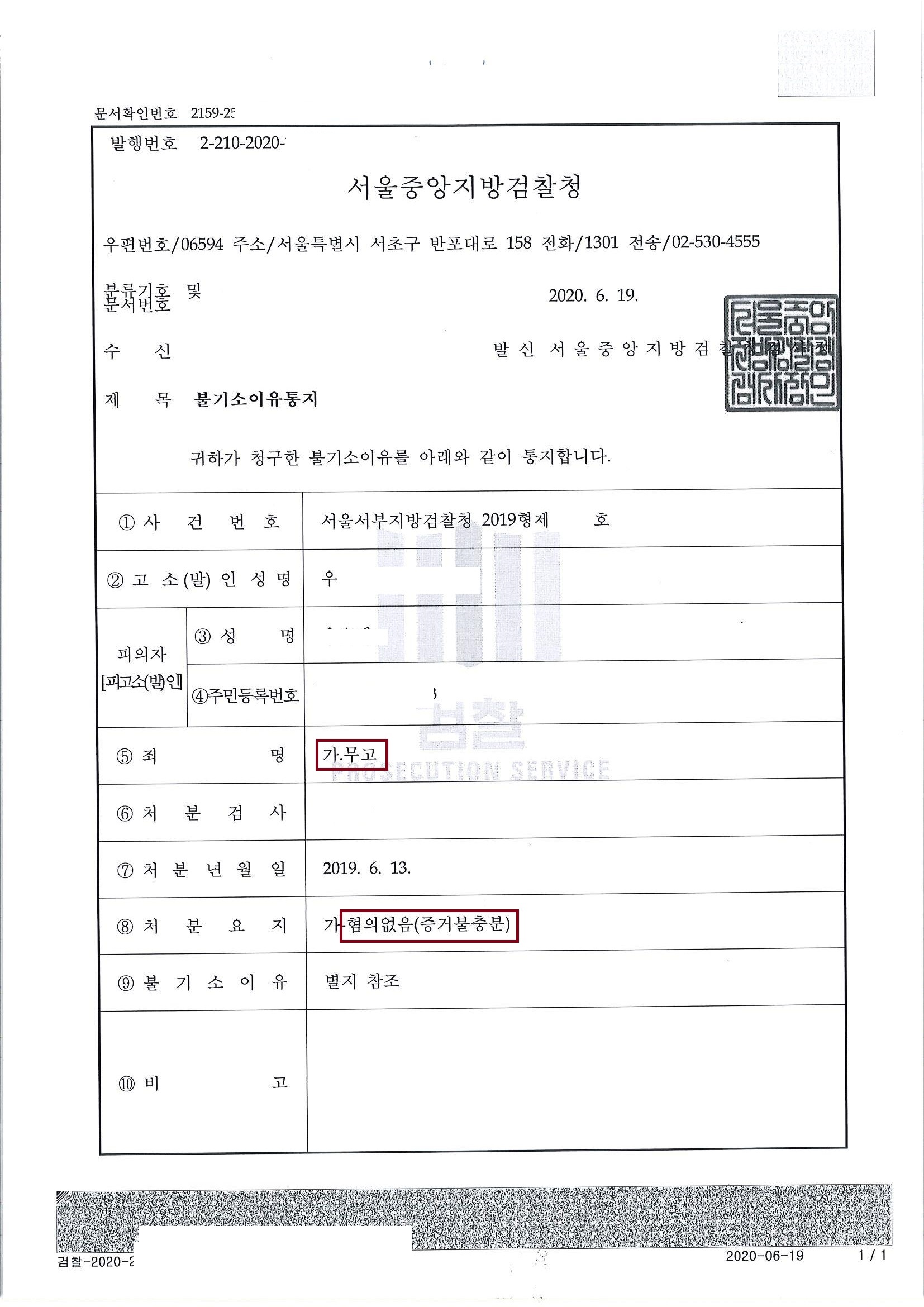 적극적인 변론의 결과로 무혐의 처분을 이끌어 낼 수 있었습니다.