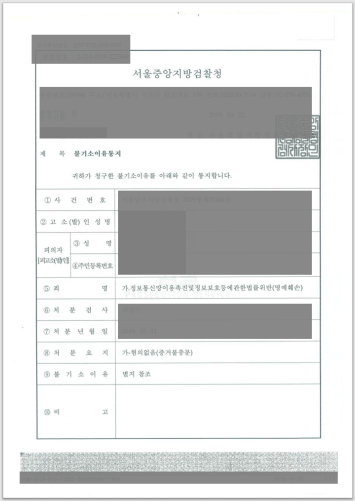 명예훼손 무혐의