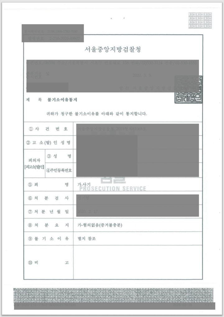 변호인의 이러한 주장 및 자료들을 검토한 검찰은 이러한 주장 및 입증자료가 타당하다고 판단하여 최종 혐의없음 판단을 하여, 의뢰인이 더이상 해당 혐의로 수사와 재판을 받을 필요가 없었던 사례입니다.