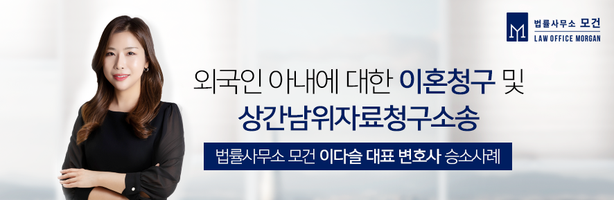 법률사무소 모건 이다슬 대표 변호사의 승소사례로 외국인 아내를 상대로 한 이혼 및 상간남위자료청구소송입니다.