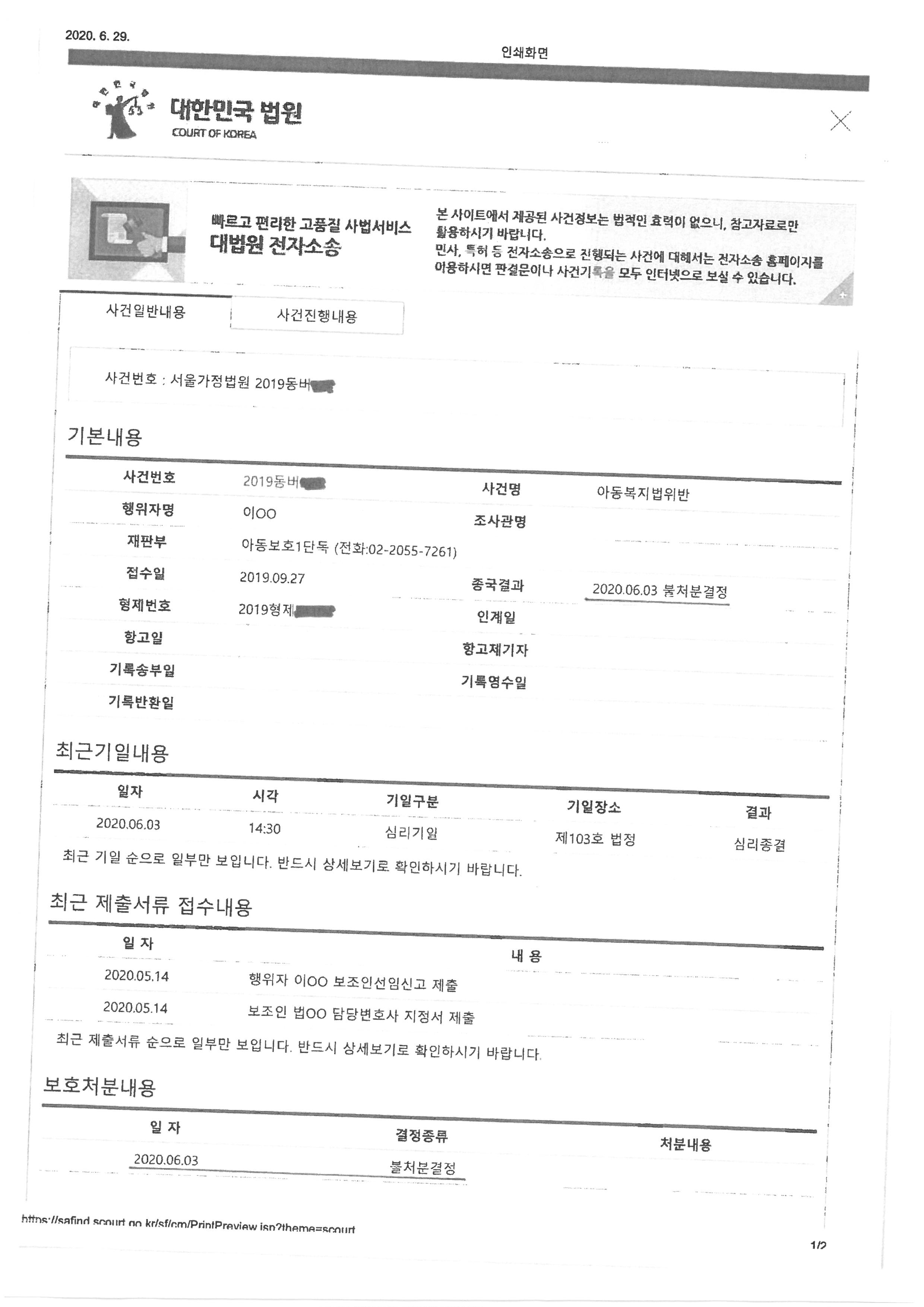 담당검사는 무혐의 심증을 가졌음에도 아동학대사건이라는 사안의 특성상 불기소처분을 하는 대신 가정법원에 사건을 송치하였으나, 가정법원의 조사 및 심리 과정에서도 의뢰인의 주장은 일관성이 있고 상식에 부합하는 반면, 피해아동의 진술을 믿기 어렵다는 이유로 담당판사는 의뢰인에 대하여 불처분결정(무혐의)을 하였음
