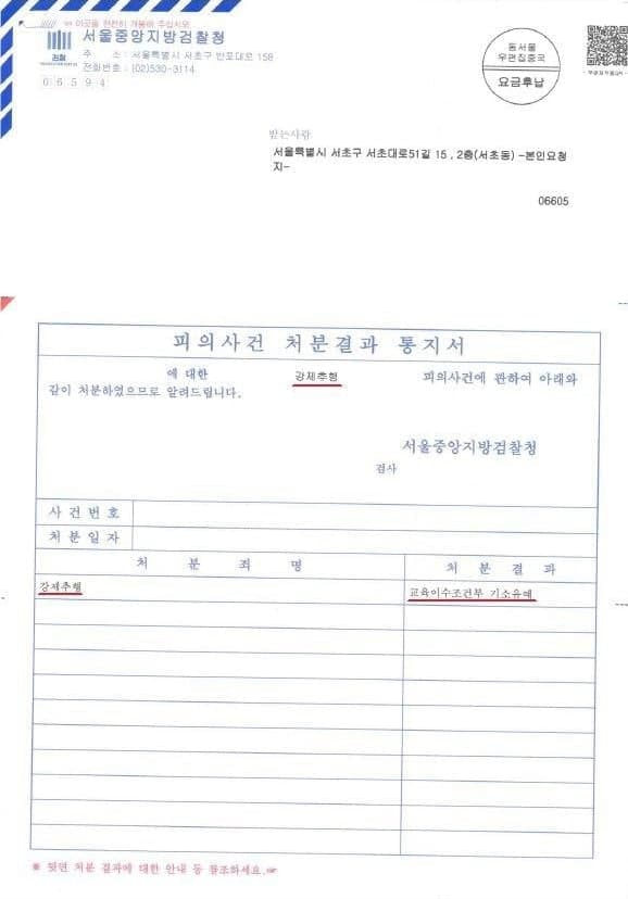 의뢰인님께서는 최근 처벌 수위가 매우 높아진 성범죄를 범하였고, 추행의 수위가 높고, 현장을 이탈하는 등 매우 좋지 않은 상황이었으므로 실형이 선고될 수 있는 매우 위험한 상황이었습니다. 그러나 앞서 말씀드린 다양한 방법으로 경찰, 검찰 수사 단계를 신중히 진행하였고 이에 서울중앙지방검찰청은 의뢰인님에게 "기소유예"처분을 내렸습니다.