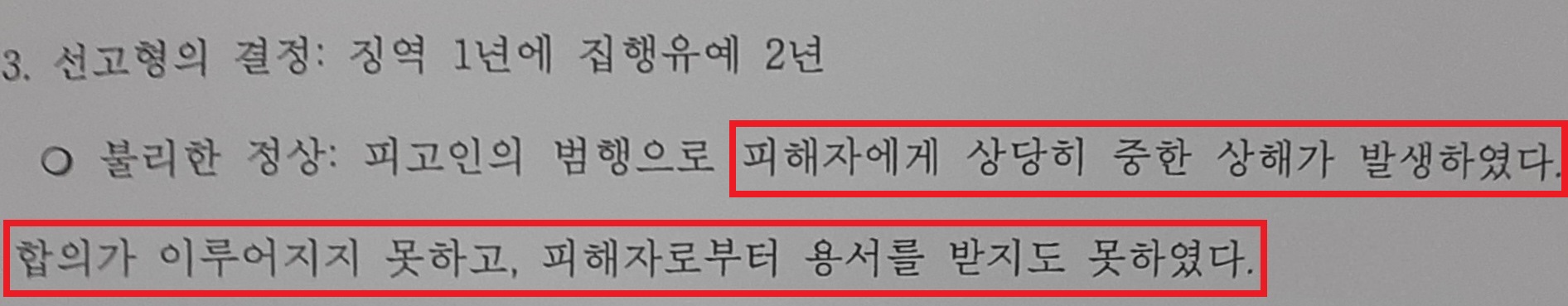 즉, 저는 ① A씨는 자신의 잘못을 모두 인정하고 깊이 반성하고 있다는 점, ② A씨는 수사 및 범죄전력이 전혀 없는 초범이라는 점, ③ A씨는 B씨가 먼저 지속적으로 시비를 걸어와 순간적으로 화를 참지 못하고 이 사건 범행을 저지른 것으로, 사건이 발생하게 된 경위에 참작할 사정이 있다는 점, ④ A씨는 B씨와 합의하고 싶어 하지만, B씨가 과도한 액수의 합의금을 요구하고 있어, 합의가 이루어지지 않고 있다는 점 등을 재판부에 적극적으로 어필하면서 "이 사건 범행으로 B씨에게 상당히 중한 상해가 발생하였고 B씨와 합의하지 못하여 B씨로부터 용서를 받지 못하였다고 하더라도, A씨의 양형사유들을 참작하여 이번에 한하여 마지막으로 최대한의 관대한 판결을 부탁드린다"라는 내용의 변론요지서를 작성하여 제출한 뒤 최선을 다하여 변론하였습니다.