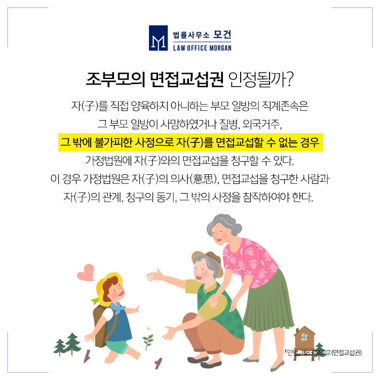 이혼 당시 면접교섭 일정이나 방법이 특정되지 않아 오히려 서로 갈등이 생겨 면접교섭이 제대로 이행되지 않은 경우가 있습니다. 이 때는 면접교섭허가심판청구를 진행하셔야 합니다. 면접교섭허가심판청구는 법원이 일정한 시간과 날짜에 면접교섭을 실시하도록 정하는 것으로 이혼 당시 추후 합의하기로 하거나 애매한 일정으로 합의가 되어 오히려 갈등이 증폭되는 경우 청구할 수 있습니다.