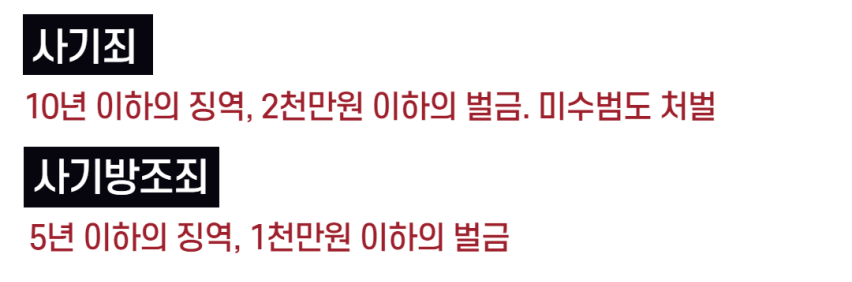[의뢰인 A씨 혐의에 적용되는 법정형에 대하여 : 사기방조죄로 유죄 인정될 경우, 형사 전과기록으로 남는 중범죄에 해당합니다.]