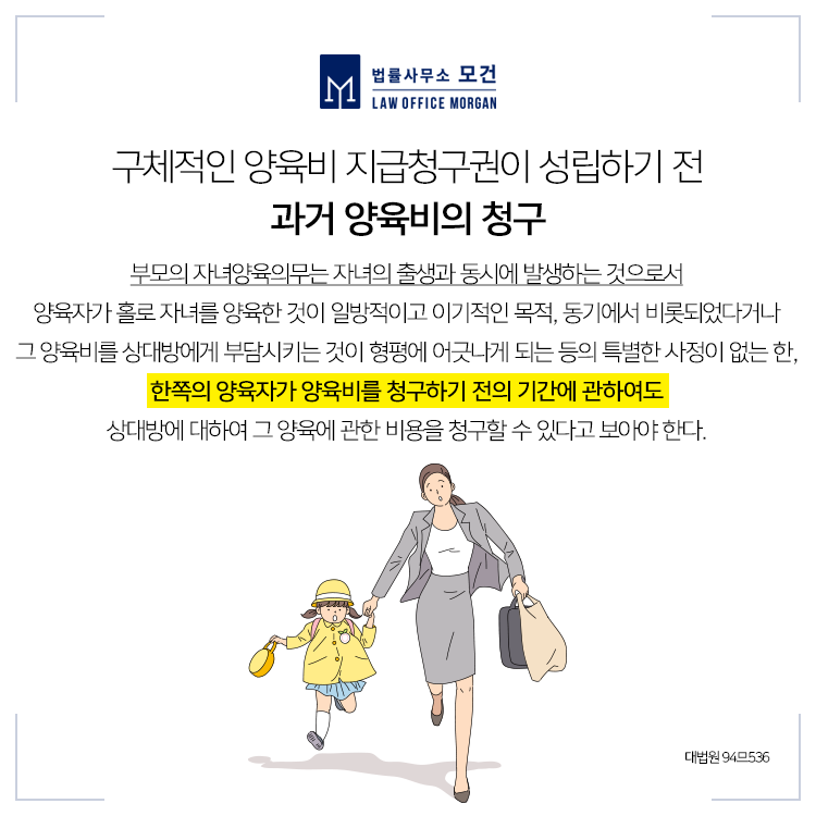 양육비는 문제는 올바르고 건강한 성장을 넘어 자녀의 생존과도 직결되어 있는 문제인 만큼 양육비와 관련한 법적 제도를 적극 활용하시어 양육비를 받아내는 것이 중요합니다. 양육비 미지급에 대한 이행명령 등의 제도 뿐 아니라 그간 자녀에 대한 양육비의 책임을 오래도록 회피해온 양육비채무자에게 과거 양육비를 청구하는 양육비청구소송 또한 가능합니다.