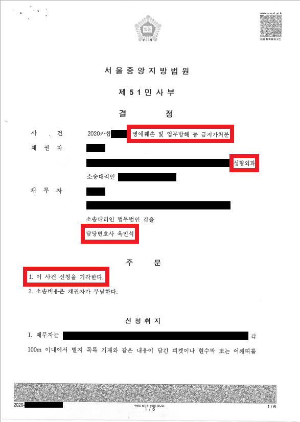 수술을 받고 부작용을 겪고 있는 환자가 최후의 수단으로 피켓을 들고 1인 시위를 진행한다는 소식을 어렵지 않게 접할 수 있습니다. 병원 입장에서는 의료사고가 발생하였다는 사실이 외부에 알려지게 되면 막대한 손해를 입게 되므로, 1인 시위를 금지시키기 위한 각종 수단을 강구하기 마련인데요. 가장 대표적인 수단이 바로 1인 시위를 금지하는 가처분 신청입니다.