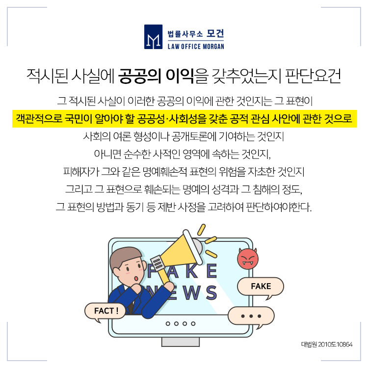 현재 우리 법은 허위사실적시 명예훼손 뿐 아니라 사실적시 명예훼손 또한 처벌하고 있습니다. 지난 2016년 헌법재판소의 결정 또한 진실이라도 비방 목적이 인정될 시 처벌된다고 보고 있는데요.