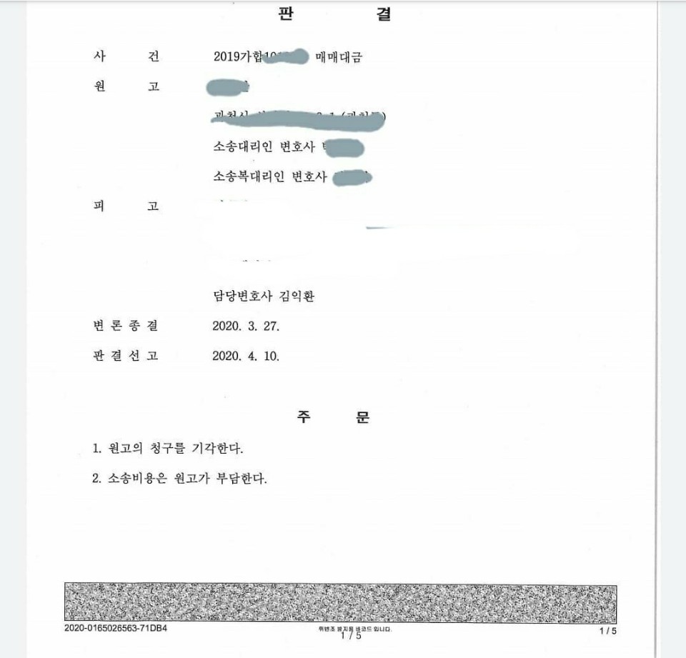 하지만 이 사건 토지가 개발지역에 편입이 되고 시세가 급등하자 원고는 돌연 세금문제를 거론하며 피고에게 수억원을 요구하였고, 피고가 이를 거부하자 이 사건 토지에 대한 소유권을 주장하며, 5년전에 형식적으로 작성하였던 '부동산매매계약서'를 근거로 10억원을 청구하였습니다.