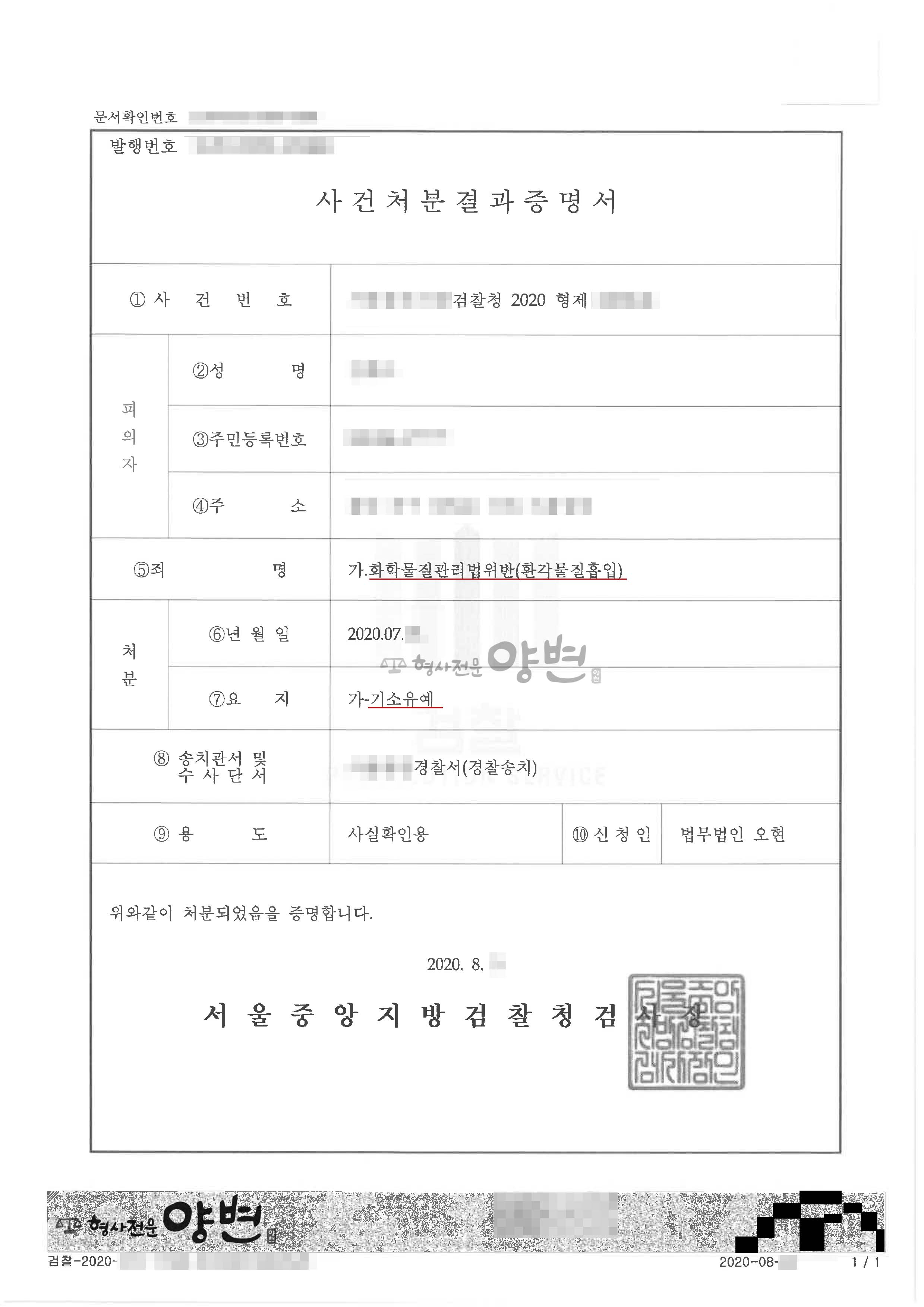 마약/화학물질 사건으로 입건된 피의자들 중 일부는 어떻게든 처벌을 피하고 싶다는 막연한 생각에 빠져, 수사기관이 확보한 증거에 반하면서까지 죄를 부인하다가 결국 중한 처벌을 받기도 합니다. 그러나, 마약/화학물질 사건 대부분은 과학수사를 통해 이루어지는 바, 위법한 행동을 한 피의자라면 무모하게 죄를 부인하기보다, 이 사건처럼 증거를 기반으로 최대한의 선처를 기대할 수 있는 변론방향을 정하는 것이 타당하다 할 것입니다.