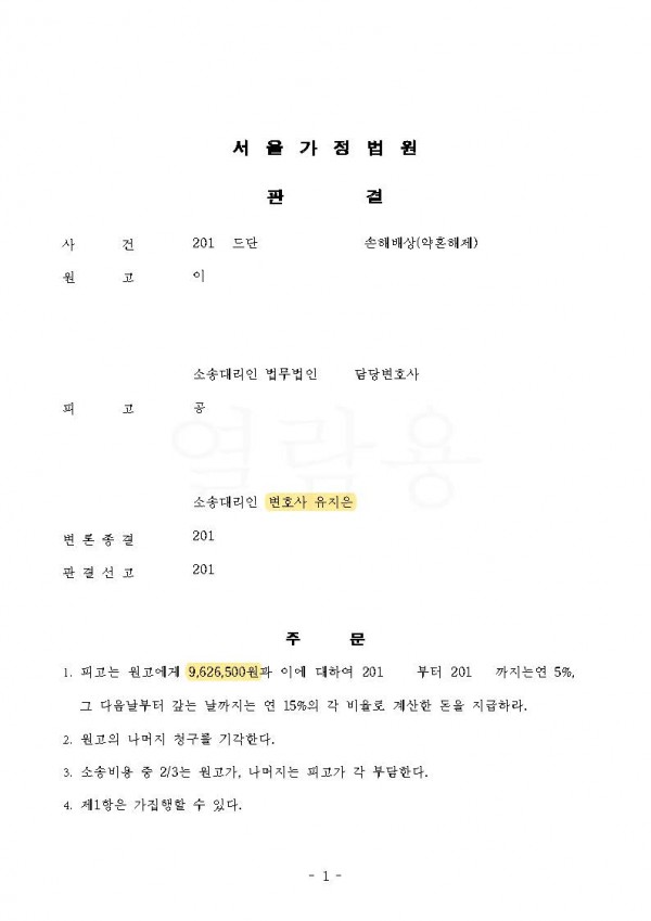 결국, 주장이 인용되어 여자친구가 결혼을 위해 지출한 비용과 위자료까지 모두 포함하여 천만 원 이하로 방어함으로써 의뢰인이 원하는 결과로 잘 마무리된 사례입니다.