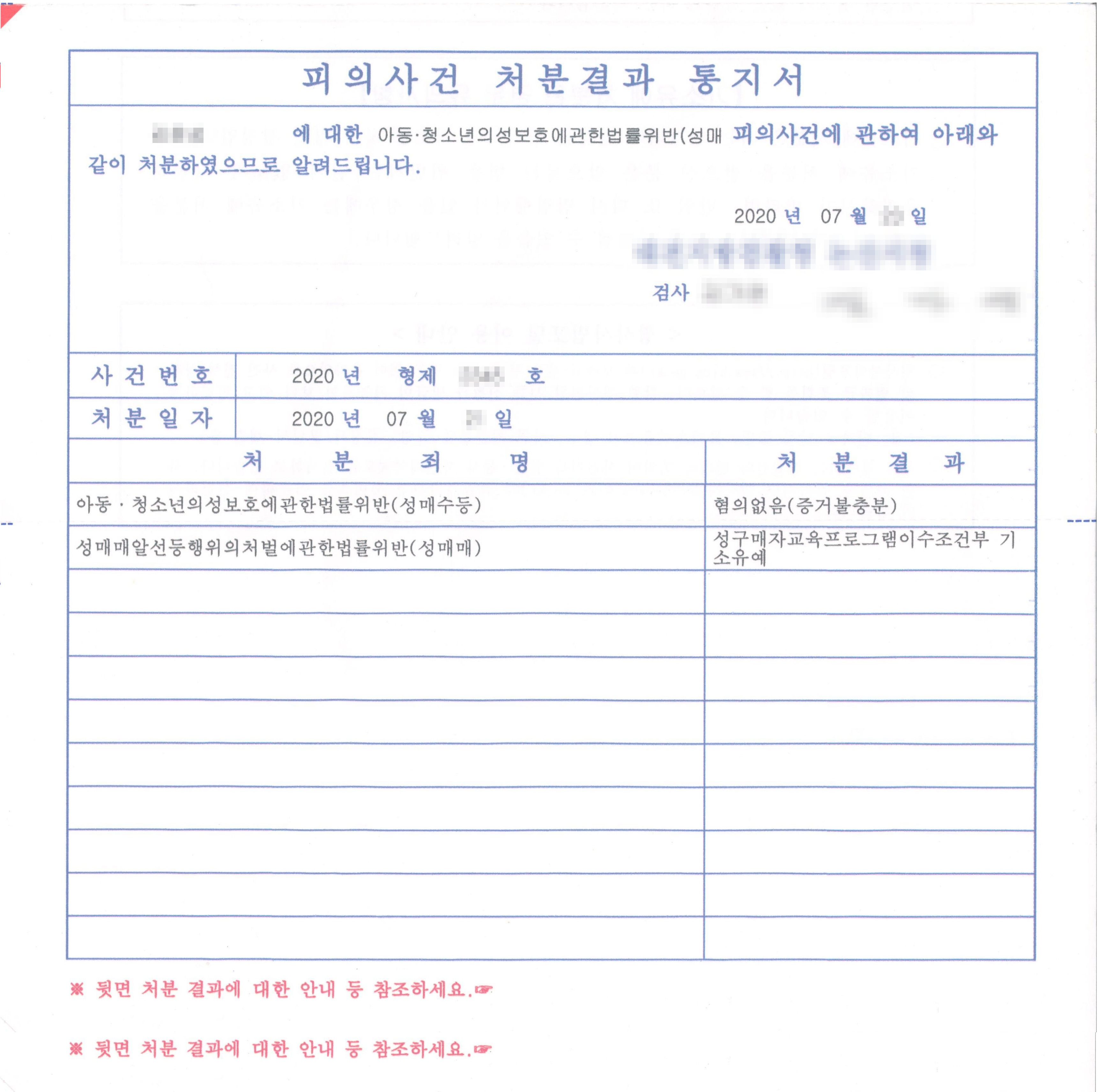 그러나 철저하게 상황과 증거를 분석하여 변론한 결과, 아청법 위반(아동청소년에 대한 성매수)은 [무혐의 처분]을 받을 수 있었고, 동시에 성매매처벌특례법 위반(성인에 대한 성매매)은 [기소유예 처분]으로 마무리 될 수 있었습니다.