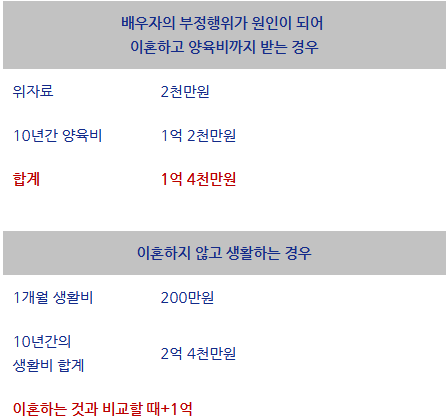 이혼하지 않고 위자료 청구만 하는 경우 금전적으로 이득이 될 수도 있습니다.