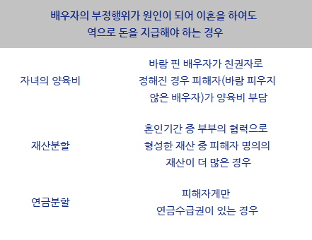 배우자의 외도로 이혼하는 경우에도 반대로 돈을 주어야 할 수 있습니다
