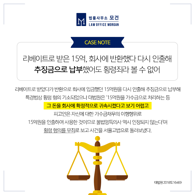 위 사례처럼 고의적인 업무상횡령은 물론, 업무추진비의 명목으로 사용하였음에도 억울하게 업무상횡령죄의 혐의가 적용되는 경우도 적지 않습니다. 업무상횡령죄는 그 이득 가액에 따라서도 가중처벌이 되기 때문에 혐의를 받고 있는 금액 전체가 아닌, 일부만이라도 그 혐의를 벗어날 수 있더라도 형을 줄이는데 큰 도움을 받을 수 있습니다. 따라서 형사전문변호사의 적극적인 조력을 통하여 양형을 최소화하고, 억울한 부분이 있다면 적극 대응하여 방어하는데 최선을 다하여야 할 것입니다.