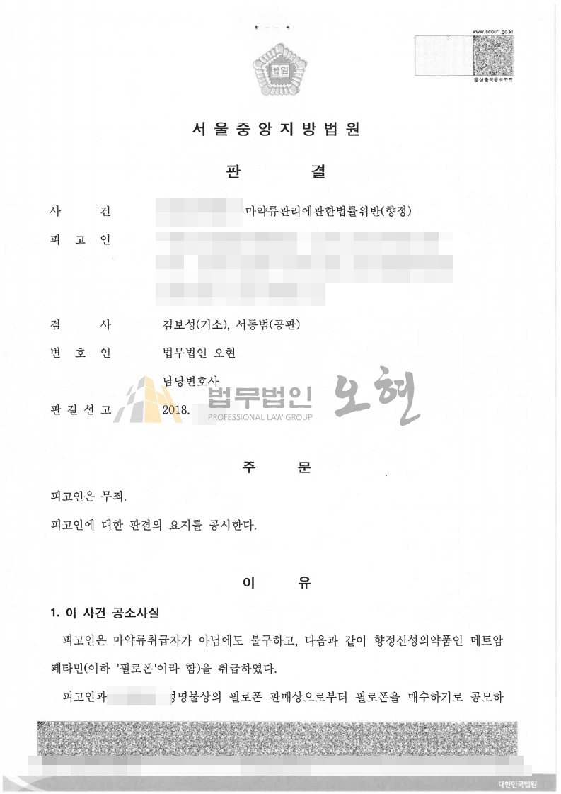 ※본 사건의 1. 판결문 일부를 첨부합니다. 본 성공 사례 및 첨부자료의 무단 도용을 금합니다.