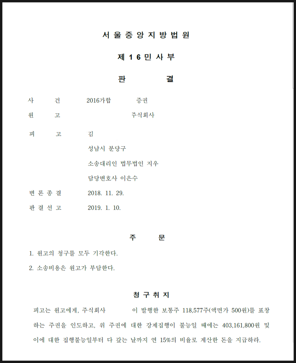 ![[승소사례] 주식 인도 청구 피고사건 승소판결](/_next/image?url=https%3A%2F%2Fd2ai3ajp99ywjy.cloudfront.net%2Fuploads%2Ftitleimage%2Foriginal%2F5c23344f227b15a91df80b76-original.jpg&w=3840&q=75)