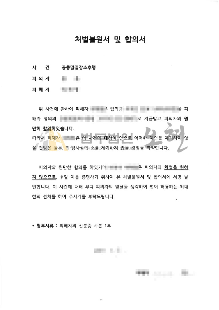 ※본 사건의 1. 처분문서, 2. 합의서를 첨부합니다. 본 성공 사례 및 첨부자료의 무단 도용을 금합니다.