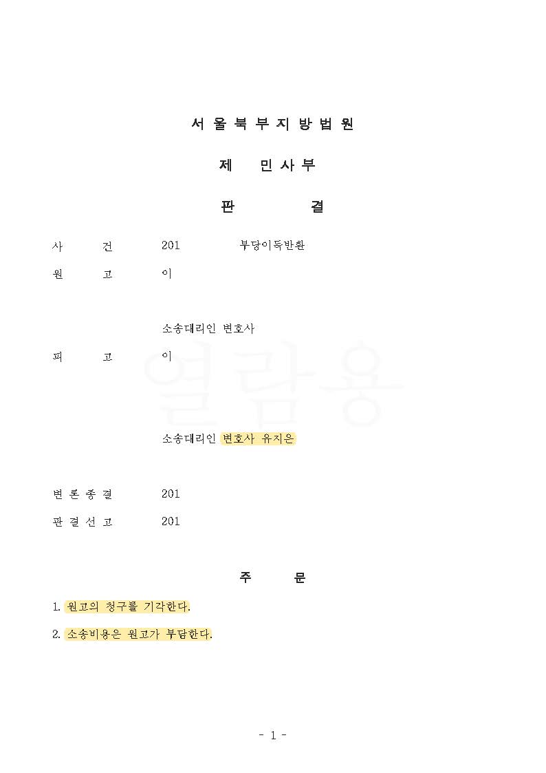 결국, 주장이 모두 인용되어 원고의 청구를 기각하는 내용으로 전부 승소한 사례입니다.