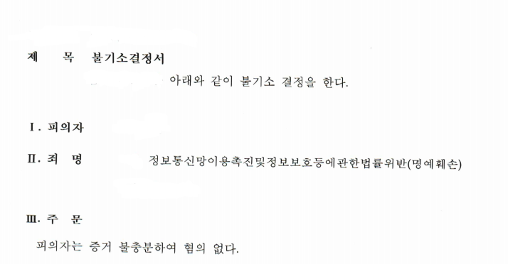 변호사로서 의뢰인의 현재 처한 상황에 대하여 충분한 상담을 통하여 알았습니다. 의뢰인이 당한 부당한 일에 대하여 지역 커뮤니티에서 의견 교환하기 위하여 글을 게시하게 된 점과 병원 명칭이나 간호사의 이름을 직접적으로 언급하지 않은 점들을 구체적으로 경찰 조사 시에 변호하였습니다. 그렇게 몇 차례의 경찰 조사를 받고 명예훼손에 대하여 불기소처분을 받았습니다.