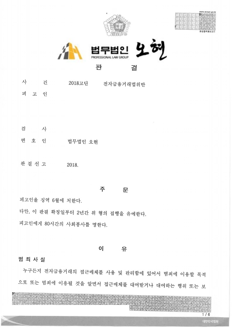 본법무법인은 의뢰인의 행동이 보이스 피싱 범죄에 참여할 고의가 전혀 없고 특히 의뢰인이 보이스 피싱 범죄에 해당된다는 사실을 알고 바로 경찰에 자진신고 하였다는 점을 재판부에 강력히 변론하였습니다. 또한 의뢰인이 경제적 궁핍함을 벗어나기 위하여 이번 실수를 하였다는 점을 말씀드리며 의뢰인이 다시는 이러한 실수를 하지 않을 것을 설득하였습니다. 결국 재판부는 본법무법인의 변론을 받아드려 의뢰인의 혐의에 관하여 집행유예 선고를 하였고 이에 의뢰인의 일상생활을 지킬 수 있었습니다.