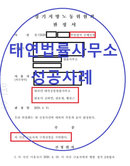 태연 법률사무소는 부당징계, 부당 정직 등 근로자의 입장을 대리해 구제신청, 소송 등을 진행하기도 합니다. 또한 회사입장을 대리하여 부당한 근로자의 신청을 반박하고 회사 측 입장에 유리한 주장을 통해 회사 대리인으로서의 업무를 진행하기도 합니다. 이와 관련해서 회사측 대리를 진행한 노동위원회 구제신청 회사 측 대리