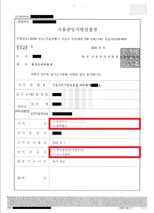 이러한 저의 조력을 바탕으로 A씨는 공갈미수 혐의에 대해서는 '혐의없음(증거불충분)', 명예훼손 혐의에 대해서는 상황이 불리해진 B씨가 고소를 취하하여 '공소권없음' 처분을 받음으로써 억울한 누명에서 벗어날 수 있었습니다.