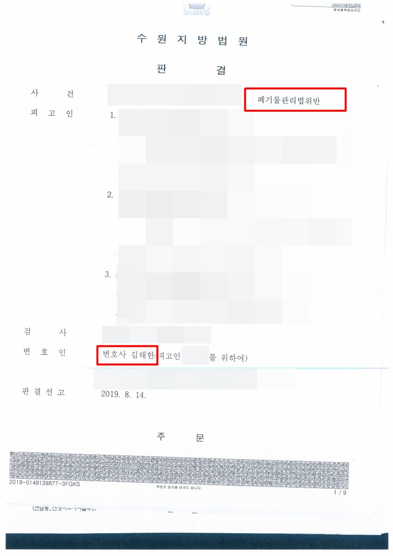 오늘은 요즘 화성시에서 논란이 되고 있는 폐기물관리법위반 형사사건에 관하여 승소사례를 소개해드리겠습니다.