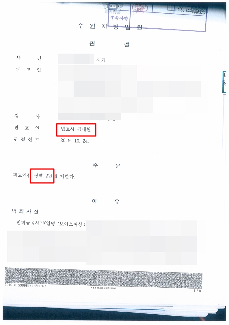 오늘은 보이스피싱범죄 즉 사기죄에 관하여 방어한 승소사례를 소개해드리겠습니다.