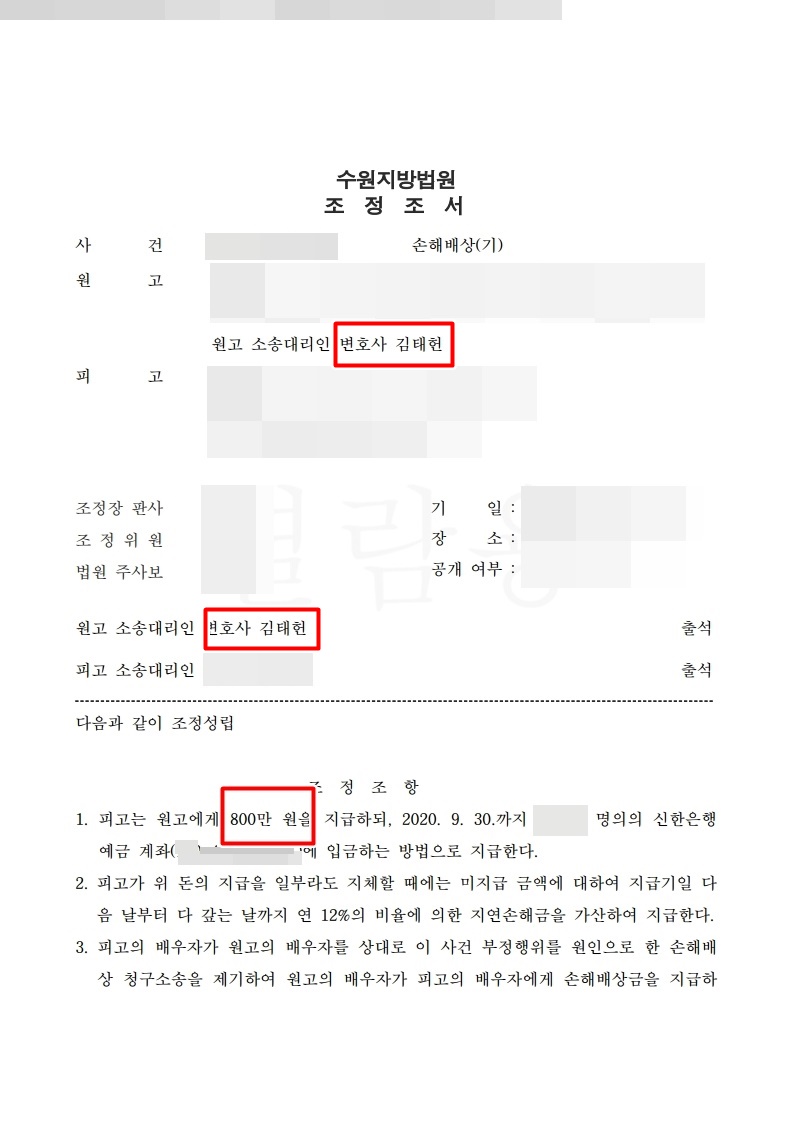 종종 이렇게 조정으로 증거가 없어도 승소하는 경우가 있으니 증거 없다고 고민하지 마시고 전문가인 김태헌 변호사에게 문의하시기 바랍니다.