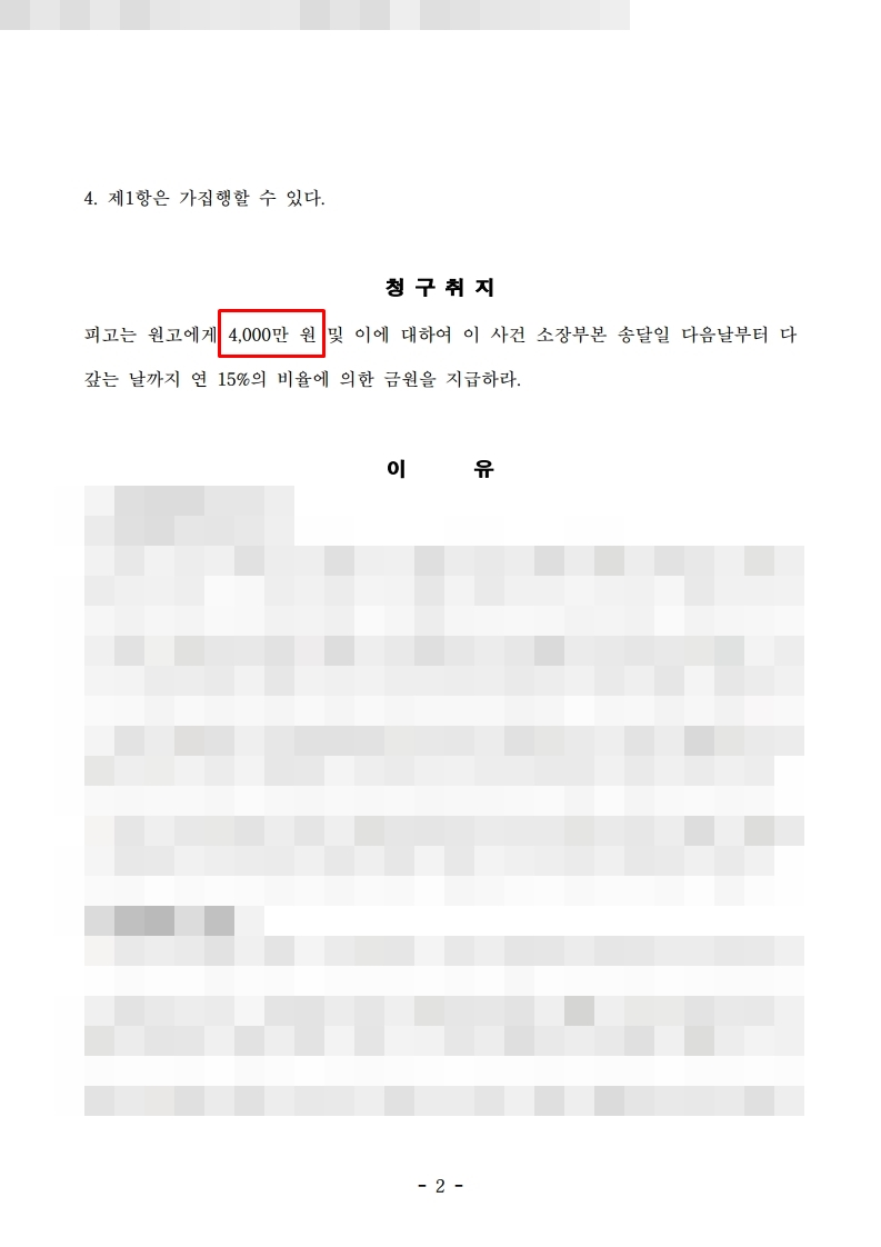 원고는 피고에게 위자료로 4000만원을 청구하여 피고는 소장을 받고 수원/용인/성남/화성 김태헌 변호사 사무실로 방문하였습니다.