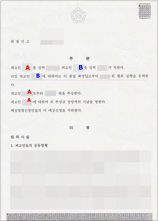 아울러 몰수와 추징도 피할 수 있었고, 피해자들의 배상명령신청도 각하될 수 있었습니다.