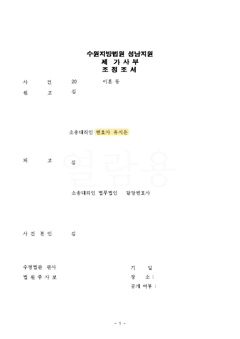 이에 의뢰인 또한 혼인 기간 경제활동하며 남편의 특유재산의 유지 및 증식에 기여하였고, 혼인 기간 의뢰인 혼자서 가사와 양육을 전담하였으며 생활비 대부분을 부담한 점 등을 강조하여 재산분할대상에 남편의 특유재산까지 전부 포함되어야 한다고 주장하였습니다.