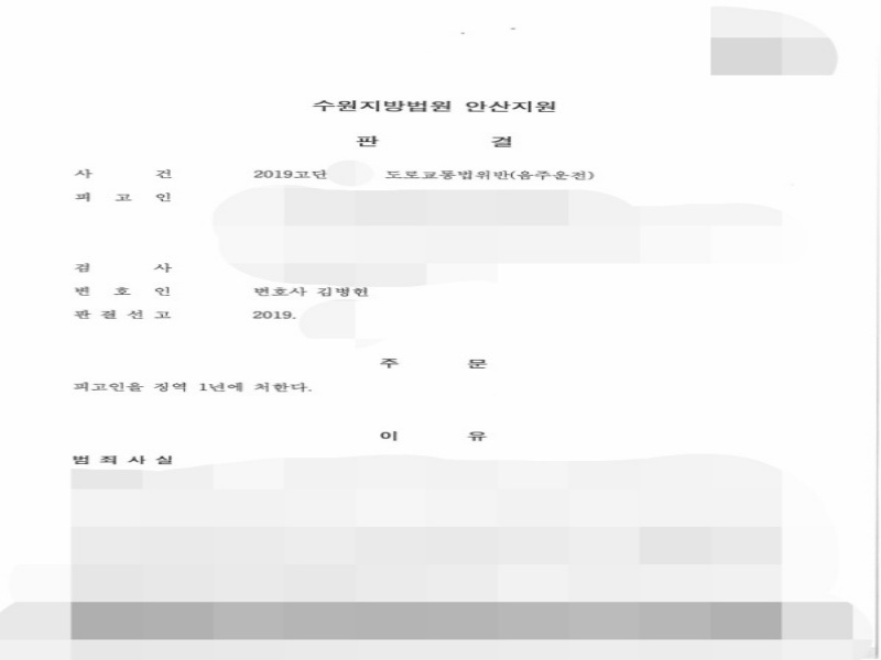 그리고 현재 가슴깊이 반성하고 있으며, 알코올과 관련된 치료도 계획하고 있다는 점을 주장하였습니다. 더구나 의뢰인의 경우 명백한 고의를 가지고 음주운전을 한 것이 아님을 명확하게 법원에 전달하였습니다.