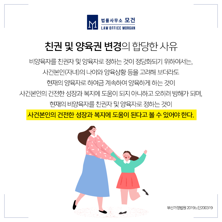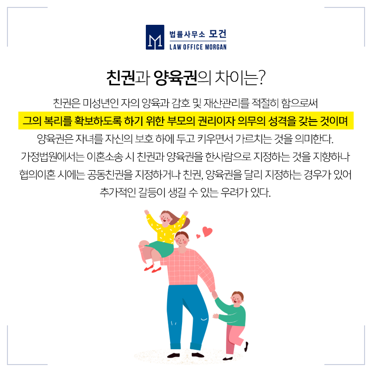 협의이혼 또는 재판상 이혼을 하면서 정해진 친권양육권을 변경하고자 하시는 분들이 계십니다. 이혼 당시 자녀의 친권자 및 양육자를 정했더라도 자녀의 복리를 위해 필요한 경우에는 친권자 및 양육자를 변경할 수 있습니다. 다만 주의해야할 사항은 가정법원이 친권양육권을 변경할 때 '자녀의 복리'를 최우선으로 두고 있다는 점입니다.