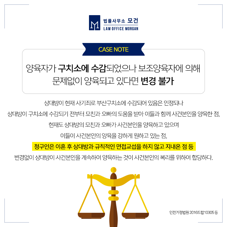 따라서 특정 상대방이 자녀를 양육하기를 원한다고 해서 허용되는 것이 아니라, 현재 자녀의 양육환경을 바꾸면서까지 친권양육권을 변경해야 할 충분한 사정이 뒷받침 되어야 하므로 이혼전문변호사의 충분한 법률자문을 받아 변경심판청구에 임하시는 것이 좋습니다.