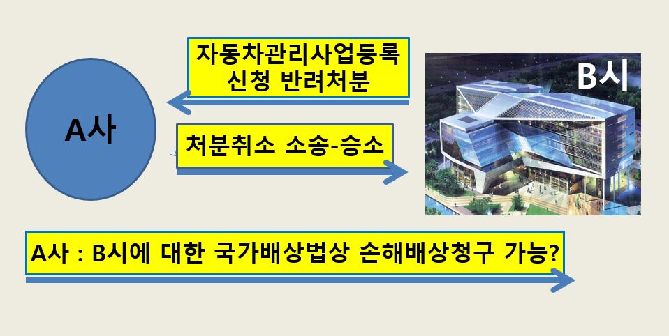 앞서 포스팅한 ‘[1탄]시청의 반려처분 취소사례‘에 따라, 법원은 B시청의 반려처분을 취소하였습니다. 그러나 B시청은 위 반려처분 취소소송에 대하여 불복하였고 결국 대법원까지 가서야 의뢰인 A의 승소를 승복하였습니다. 의뢰인 A사는 드디어 소형 자동차 정비업을 등록할 수 있게 되었습니다. 하지만 길고 긴 법정 공방으로 인해 A사는 2년 간 소형 자동차 정비업을 하지 못한 손해(약 1억 6천만 원)이 발생하였고, 이에 대하여 B시를 상대로 손해배상을 구한 사건입니다.