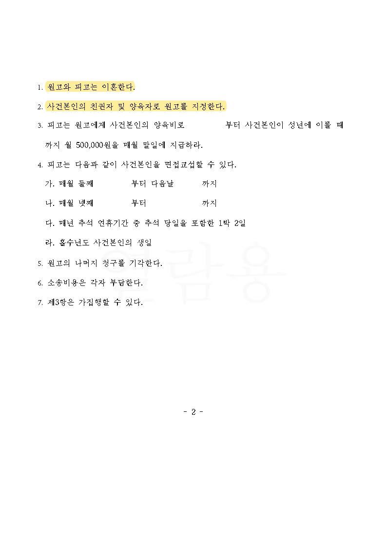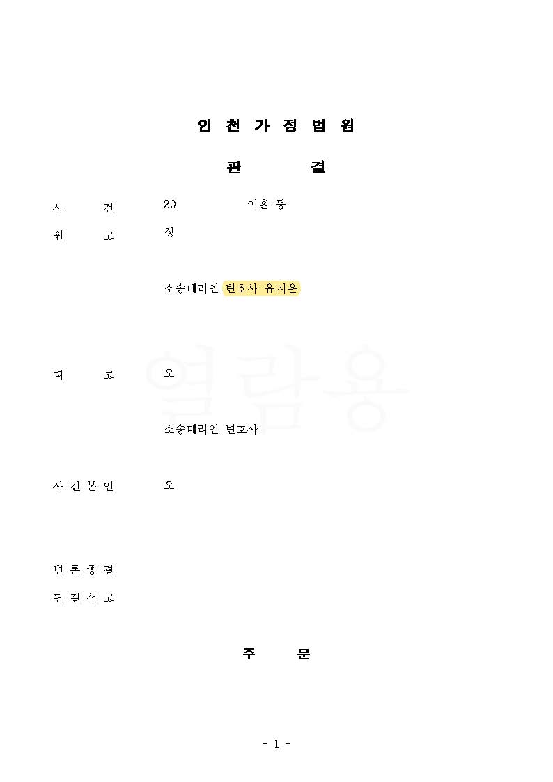 남편에게 별다른 귀책 사유가 없는 상황에서 자칫하면 의뢰인이 유책배우자가 되어 이혼이 기각될 수도 있었지만, 결국 주장이 모두 인용되어 의뢰인이 간절히 바라는 대로 이혼하고 아이의 친권자 및 양육자로 의뢰인이 지정되는 결과로 만족스럽게 마무리가 된 사례입니다.
