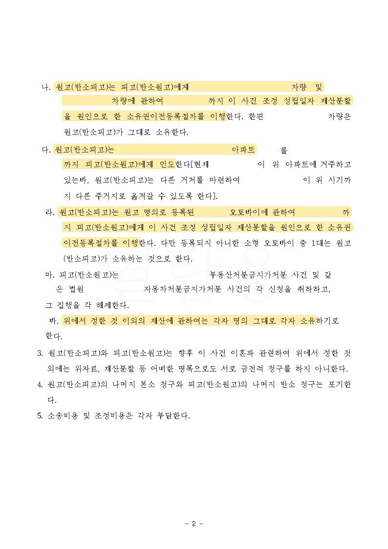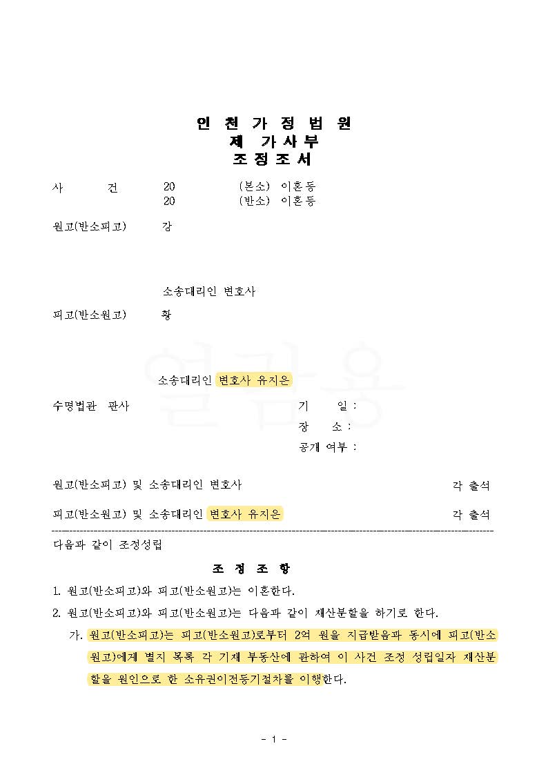 이에 남편은 의뢰인에게 계속해서 부정행위 사실을 부인해온바, 이혼 소송이 제기되기도 전에 의뢰인에게 증여한 약 3억 4천만 원 상당의 토지를 상간녀와의 부정행위에 대한 위자료 대가로 지급한 것이라고 할 수는 없고, 이혼 조정에서의 재산분할이 남편에 대한 위자료를 포함하여 이루어진 것이라고 할 수 없다며 반박하였습니다.