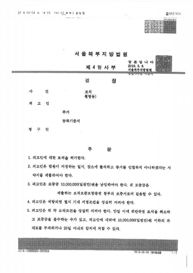 이에 변호인은 피고인의 구속사유가 더 이상 없다는 판단으로 보석허가신청을 하였습니다.