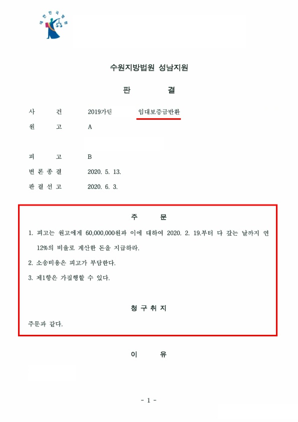 의뢰인은 임대차 기간이 만료하였음에도 불구하고 임대인이 임차보증금을 반환하지 않아 보증금반환청구소송을 진행하기에 이르렀습니다.
