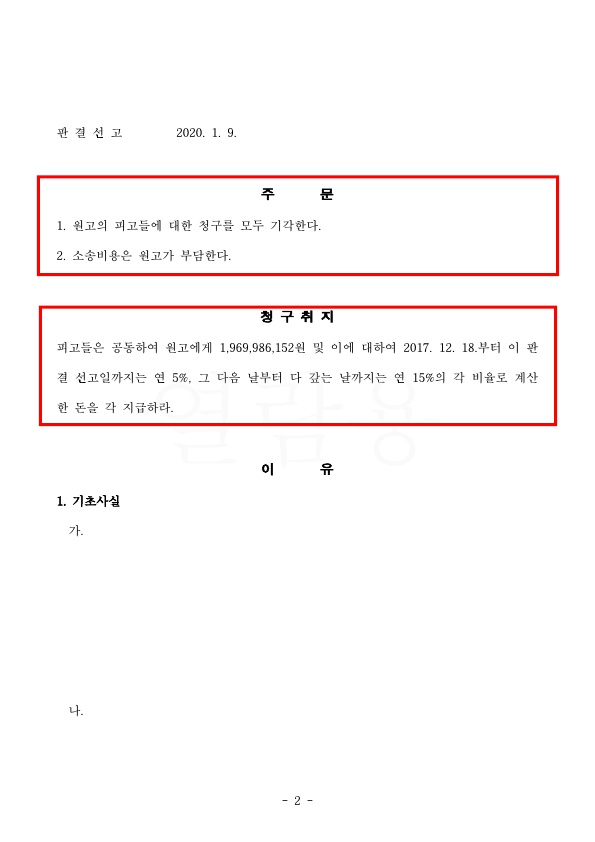원고는 이 사건 건물의 수도계량기 부위에서 발생한 원인불명의 화재로 인해 상해를 입었다는 이유로, 건물의 소유자이자 점유자인 피고1과 인접건물의 소유자인 피고2를 상대로 손해배상청구를 한 사안입니다.