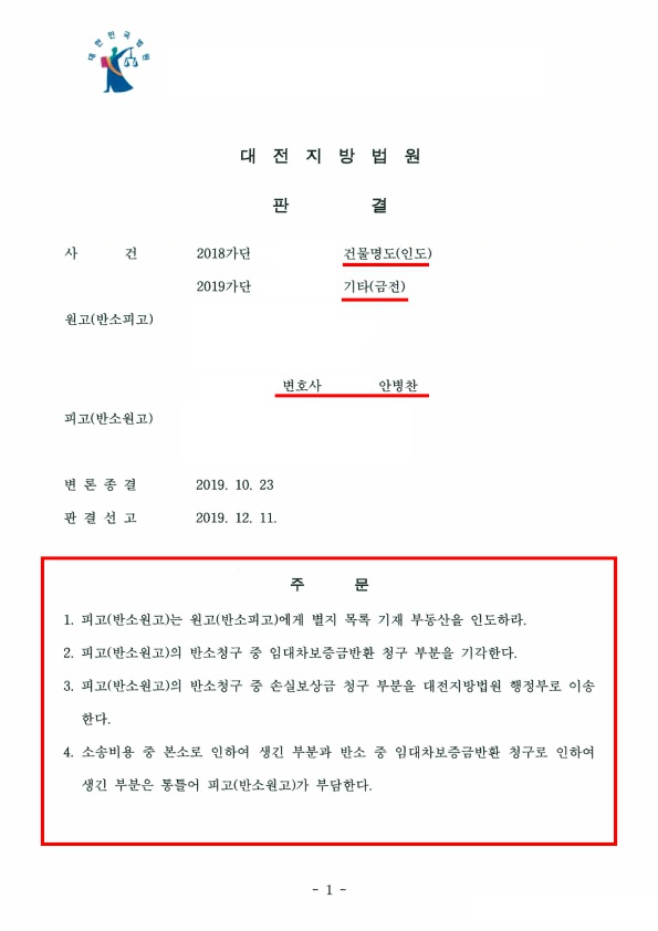 변호인은 계좌를 분석해 피고가 받을 보증금이 없다는 점을 적극 입증하고, 상대방은 영업보상이 아니라는 점, 보상금증감청구소송은 행정소송임을 이유로 피고의 본소와 반소 항변, 주장에 적극 대응하는 서면을 10회 이상 제출하였습니다.