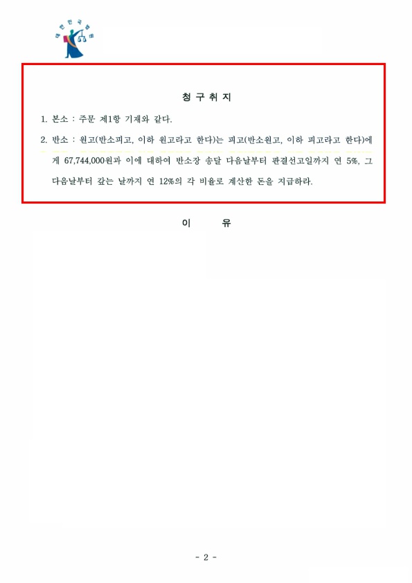 피고는 주식회사임에도 불구하고 영업보상금에 대하여 수용재결의 하자를 다투고 임차보증금이 남아 있지 않았음에도 조합에 해당 건물의 인도를 거부하면서 합의를 요구하기에 인도소송을 진행하기에 이르렀습니다.